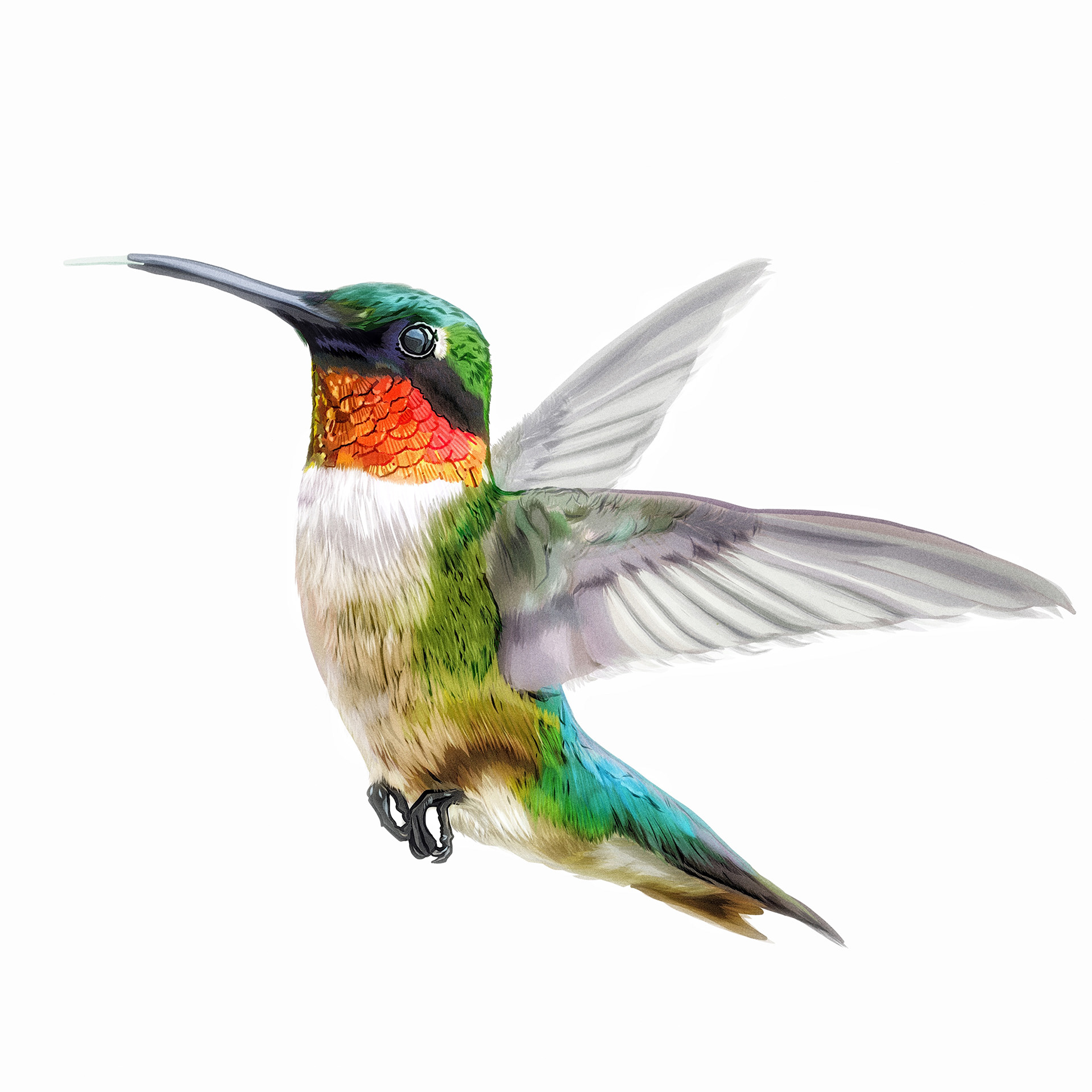 Trochilidae Vigors - Vector illustration of a hummingbird made in Adobe Fresco, and rasterized in Adobe Photoshop.